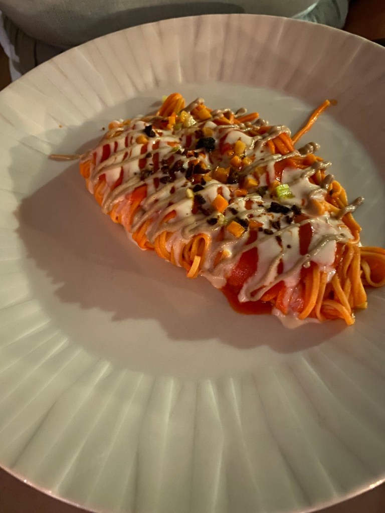 Coloured tortellini… tasty, but looking suspiciously like cow-anuses (don’t ask how I can make that comparison)Niamh’s carbonaraTiramisuA mille foglie of sorts… tasty!