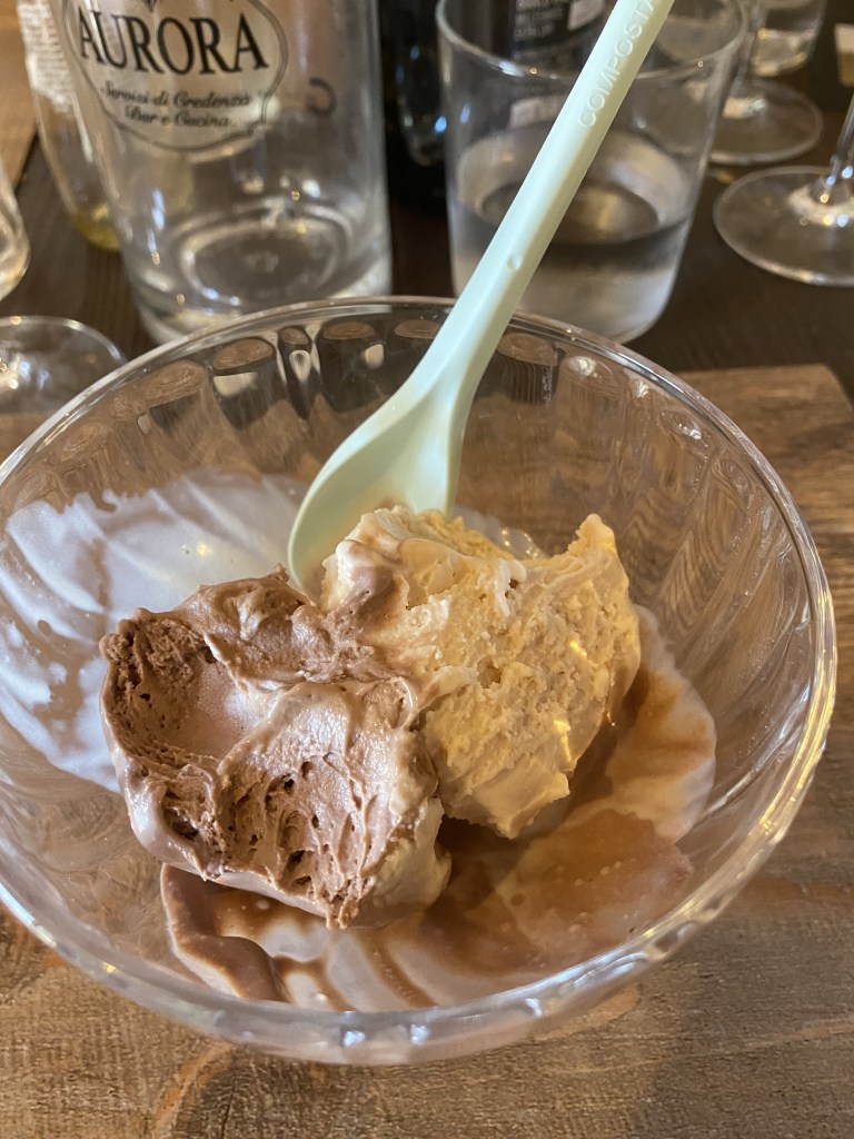 I can’t recall if there was a dessert, but I think not. We helped clear up and afterwards took a stroll into the main square of the town, while many were still chatting and drinking digestivi (think limoncello, amaro, grappa) at their table. Fran and Nick had left, so only about twelve of us rocked up and ambushed the poor girls working at the bar. We took some seats outside, while a duet were finishing up their act. We were joined by the lady, who was a singer, and she hung around while she and her pal played the kazoo and finally managed to convince Marie’s guest to see their act in a nearby town the next evening.