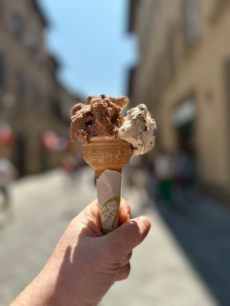 It was a little wet, with rain spitting down every so often, and so our explore was somewhat cursory. Having said that, the town had a really positive effect on me, and I found myself falling in love with it. But we also had to do what people do when they usually come to Montalcino: wine! In our explore, we hit the main piazzetta, with its magnificently narrow council building and secular belltower, but wandered down some side streets, trying to settle on a place to stop for a half hour to try out the vino, and maybe have an afternoon pastry.
