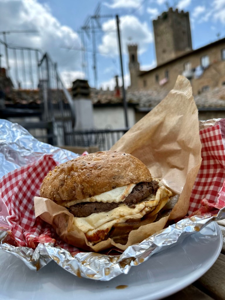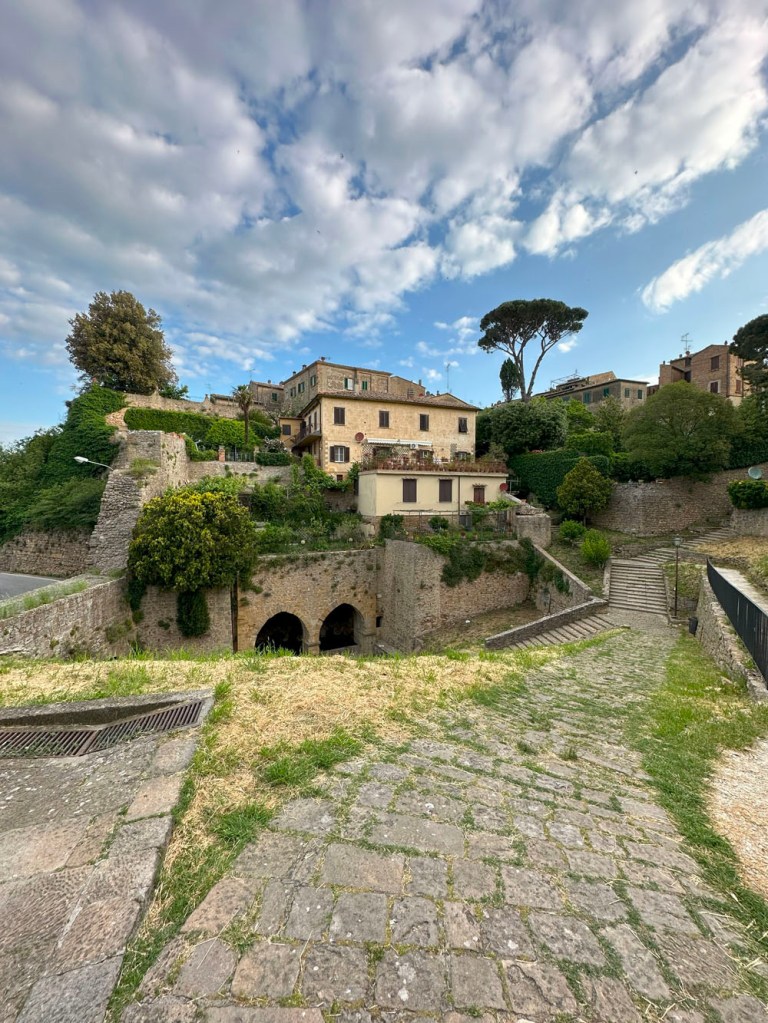 Hunger was beginning to be a factor, but we completed our route around the town – in as much as the rain allowed. We came across gardens, squares and lovely little courtyards. The one thing I thought was lacking in the old town, were views of the actual Val d’Orcia itself. It seems to rest on a hill, which gently declines all around, and on which are build modern areas. Even when I managed to climb to a walkway atop an old wall, the view into the modern town and beyond was blocked by larger olive trees. There are some views, but they seem to be across a more level plain near the Val d’Orcia. Just an observation… not much the townsfolk can do about it.