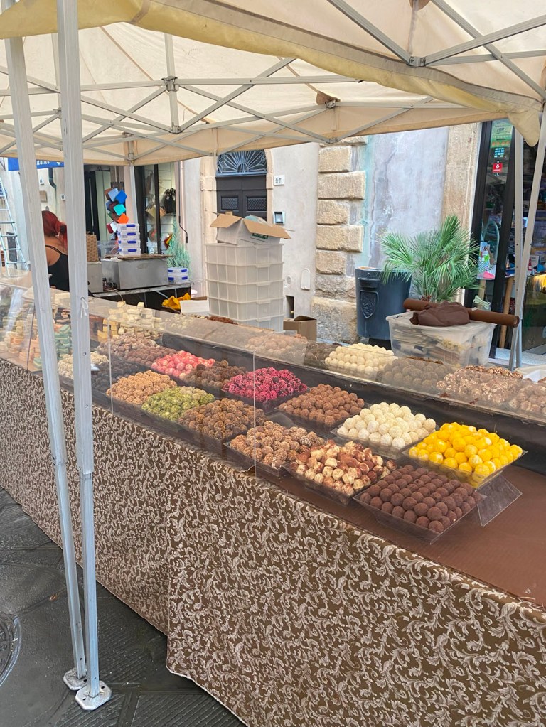 All was well with the world once more, until the guests spotted Siena’s branch of Nino and Friends, which is a confectioner with branches scattered throughout the regions of Tuscany and Campania – with stores also in Venice and Taormina (Sicily). They’re are instantly recognisable, with their chocolate ‘waterfalls’ in the shop windows. Now, I don’t have a general problem with Nino and Friends. Their products are good, and you’ll have a fun time with the salespeople there, most of whom, I am convinced, popped out of the womb being able to smooth-talk the Inuit into buying ice. Anyway, our interaction went something like follows (I have taken some artistic license – also, apologies – I have no idea this will read on a mobile phone!):